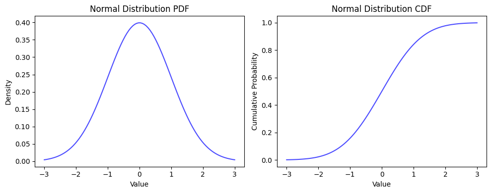 累积分布函数 CDF 是用来计算随机变量小于或等于某个特定值的概率。对于离散和连续随机变量都适用。CDF 可以通过积分(对于 PDF)或求和(对于 PMF)得到。
